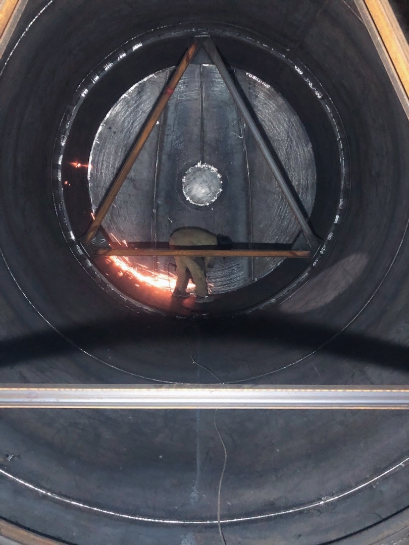 На фото — процесс внутри промышленного оборудования: резка, искры, металл и точность до миллиметра.